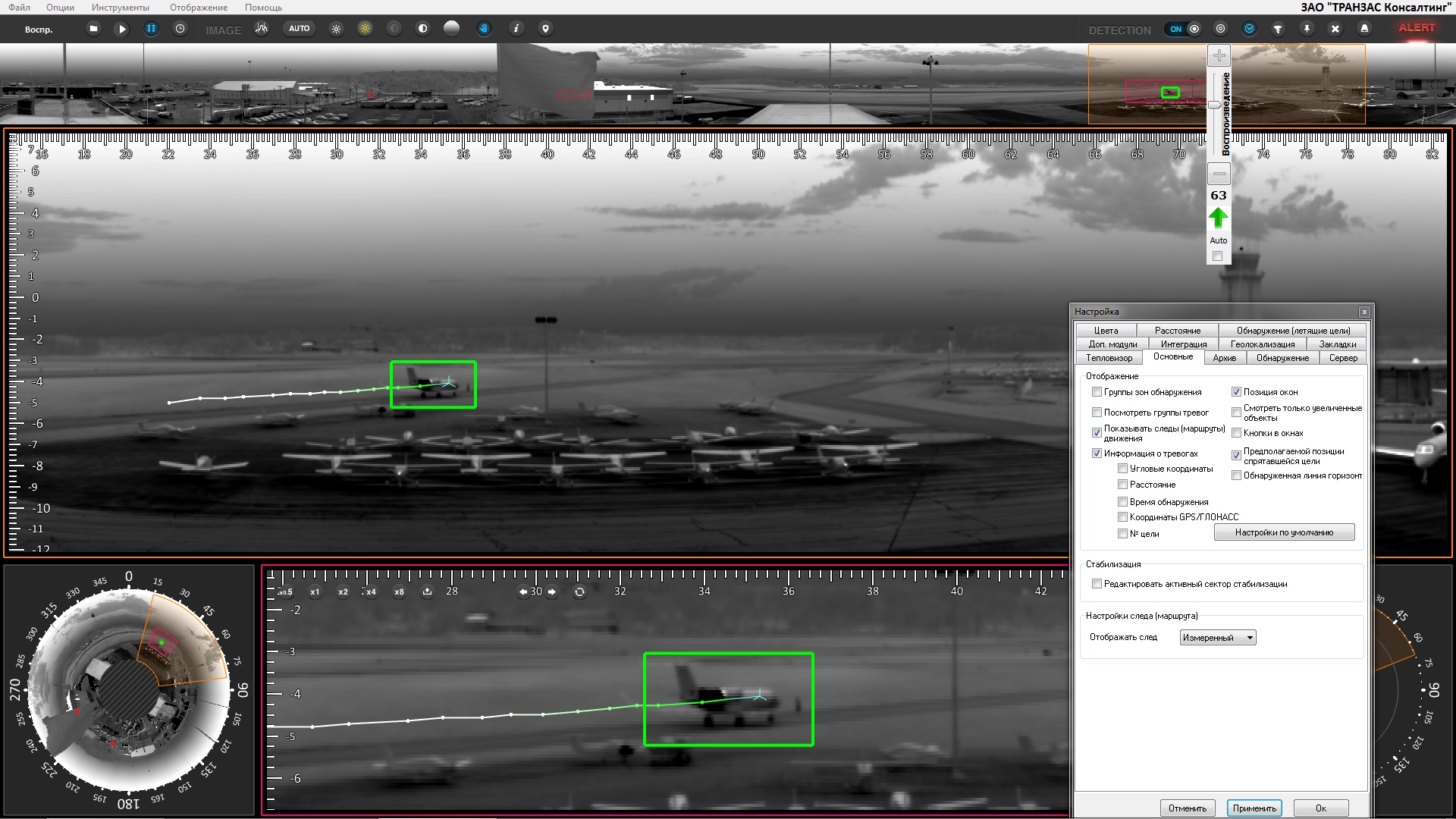 Интеграция с АЗН-В (ADS-B) обеспечивает оператора информацией об обнаруженом авиарейсе, включая его позывной сигнал, тип самолета, скорость, высоту и пр.