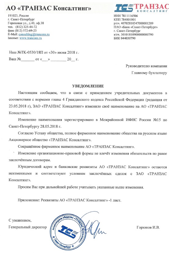 C 28.05.2018 г. официальное название комании: Акционерное общество «ТРАНЗАС Консалтинг» (сокращенно- АО "ТРАНЗАС Консалтинг").