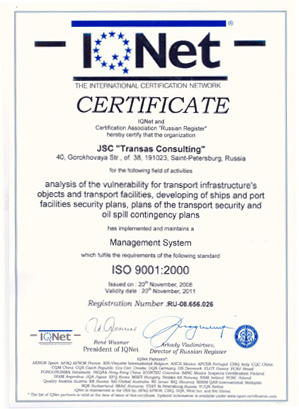 Таким образом, ЗАО «Транзас Консалтинг» является одной из немногих организацией в Российской Федерации, которые имеют сертифицированную систему менеджмента качества в области разработки планов охраны, обеспечения транспортной безопасности и ликвидации аварийных разливов нефти и нефтепродуктов (ЛРН).