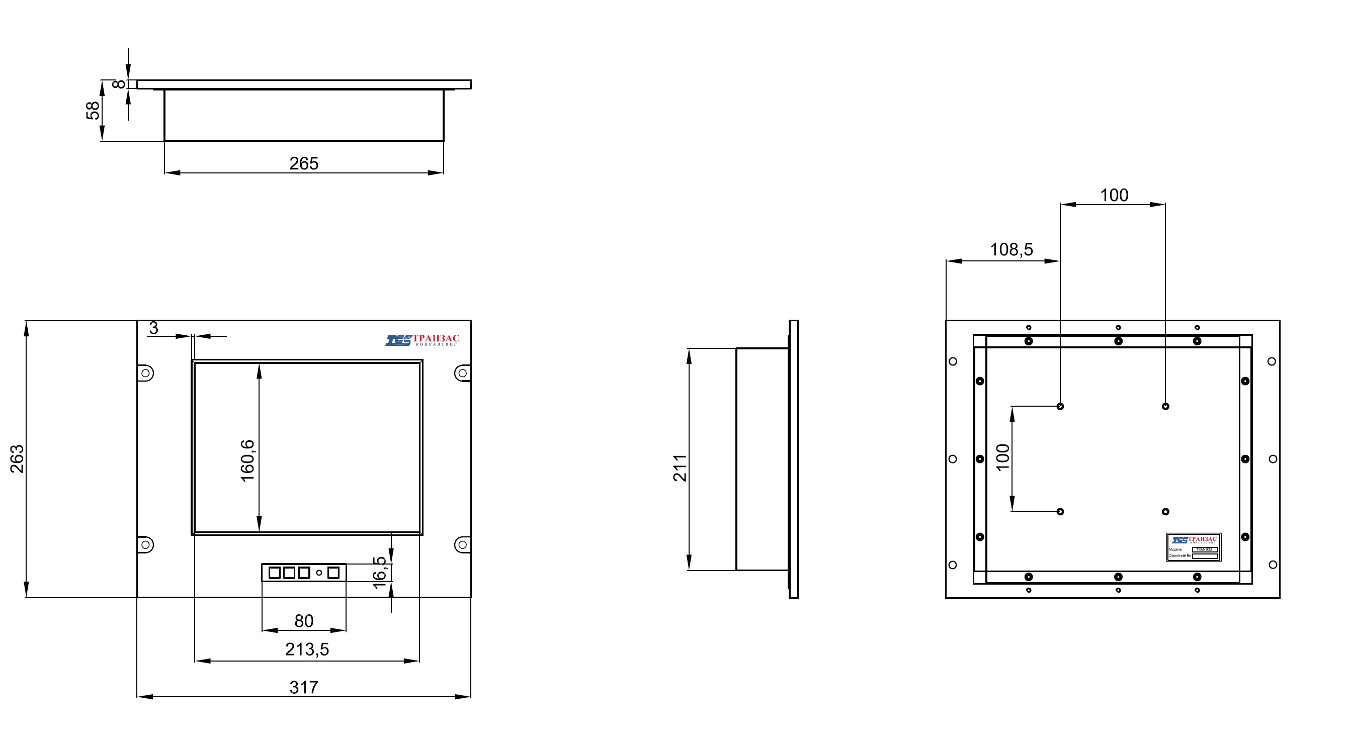 | ТКМ-10М | 10,4”, 800x600, 350 кд/м2, 400:1, 12 мс, 140/120, алюминий/ сталь, IP65 (по передней панели), VGA, RCA | 74 700 |