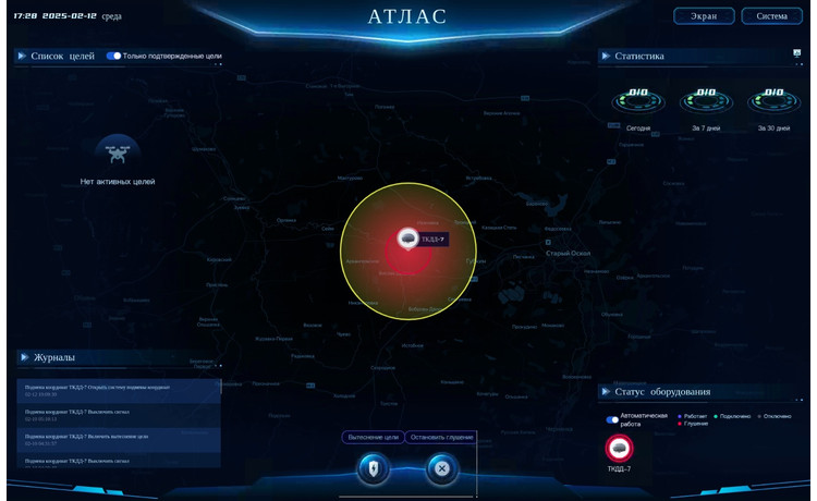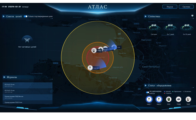 Программное обеспечение «Атлас» предназначено для управления системой автоматического обнаружения и защиты от БПЛА (TKADS), состоящей из: